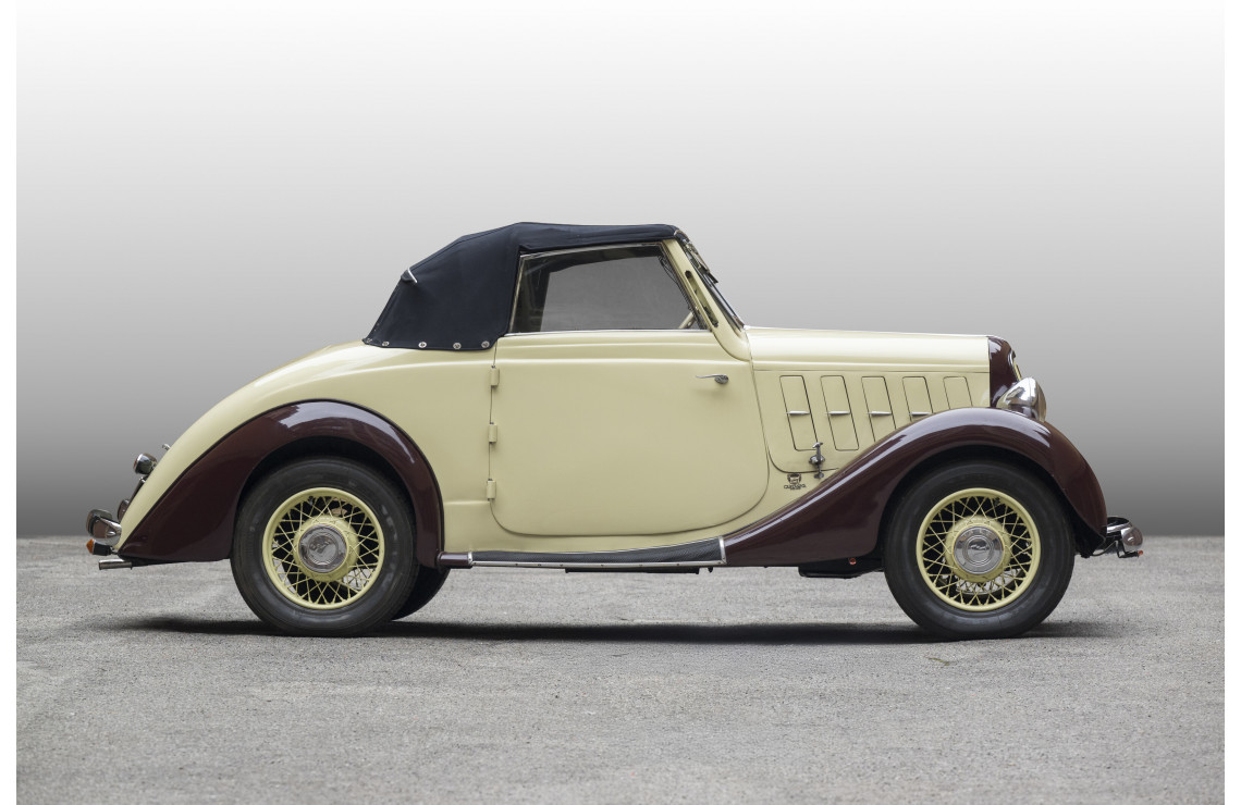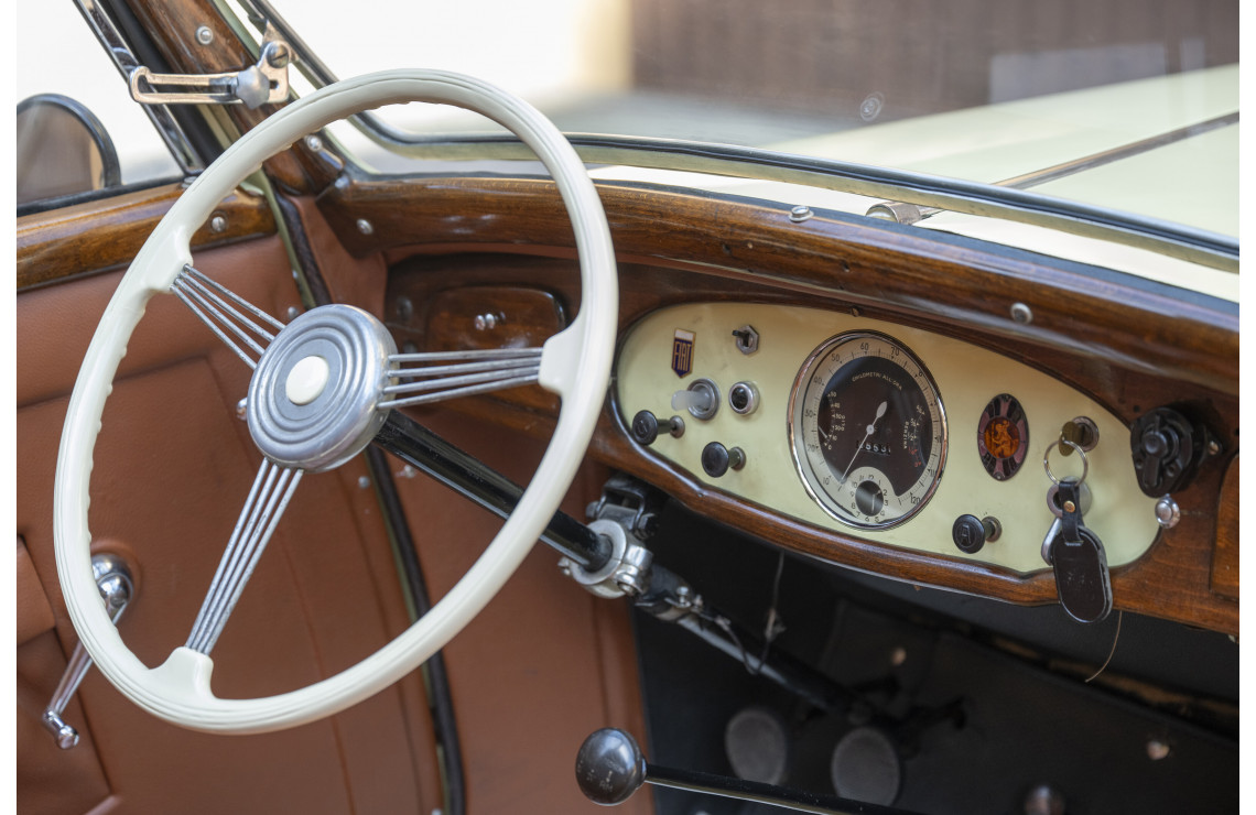 FIAT 508 Spider Carrozzeria Castagna Anno 1935 Telaio N. 508-074830 Motore N. 108-076215 Cilindrata 995 cc Iscritto al Registro A.S.I. al N. 1161 Iscritto al Registro FIAT Italiano al N. 4588 Libretto di circolazione presente Allestita dalla Carrozzeria Castagna di Milano, fu immatricolata il 19/06/1935 Si pensa sia l'unica FIAT 508 carrozzata da Castagna e non si ha notizie di altre al mondo Nel 2009 ha vinto il primo premio di categoria al concorso di bellezza di SPA in Belgio Molto interessante la targa originale con il bollo di alluminio con il fascio e le spade Per sicurezza consigliamo all’acquirente di sottoporre il veicolo a un controllo e di sostituire i fluidi, i filtri e i particolari deperibili Esposizione a Cassina de' Pecchi dal 13/03 al 15/03 Questo lotto è venduto "Così come è - Dove è" e "Con tutti i difetti visibili e occulti". Né Lucas Milano Srl, Casa d'Aste, né il venditore forniscono alcuna garanzia o dichiarazione, esplicita o implicita, di alcun tipo. Inoltre con la presente si declinano espressamente qualsiasi dichiarazione e garanzia riferite alle condizioni di un lotto, alla titolarità o alla registrabilità di un lotto, che un lotto sia igienico o di qualità commerciabile, o che un lotto possa essere utilizzato per qualsiasi scopo particolare. Nessuna dichiarazione, informazione o illustrazione del catalogo, o contenuta nei preventivi, nella fattura, in qualsiasi atto di vendita o documento di titolo, nella relazione sulle condizioni dei beni, nella pubblicità, nell'avviso o in qualsiasi altro testo scritto ovunque riportato o in qualsiasi dichiarazione orale, sarà considerata come costituente garanzia o dichiarazione relativa a un lotto. L'intero rischio relativo alle condizioni incluse, a titolo esemplificativo ma non esaustivo, qualsiasi riparazione o restauro di un lotto è a carico dell'offerente.