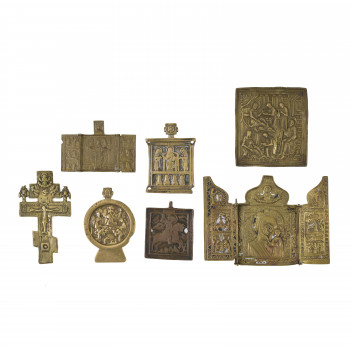 Six icons and a crucifix Crucifixion, bronze, Russia, 19th…