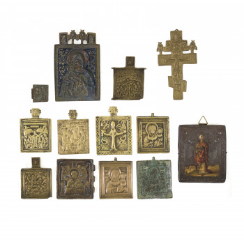 Twelve icons and a crucifix Two Saints, bronze, Russia,…