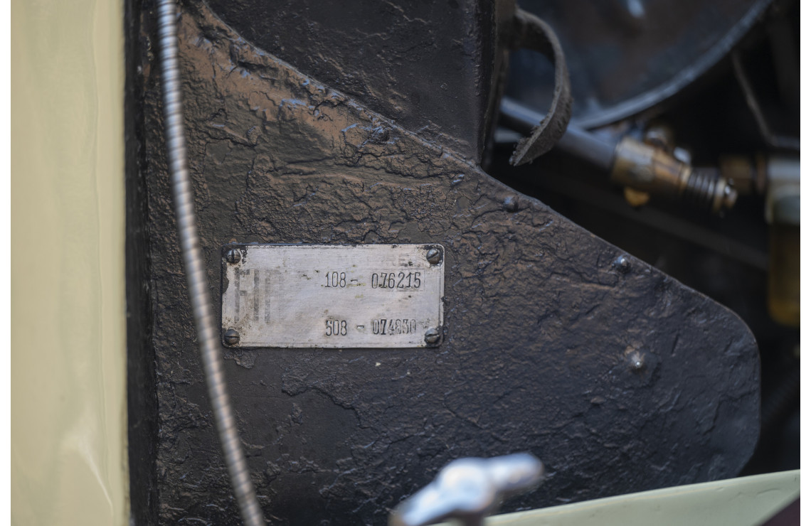 FIAT 508 Spider Carrozzeria Castagna Anno 1935 Telaio N. 508-074830 Motore N. 108-076215 Cilindrata 995 cc Iscritto al Registro A.S.I. al N. 1161 Iscritto al Registro FIAT Italiano al N. 4588 Libretto di circolazione presente Allestita dalla Carrozzeria Castagna di Milano, fu immatricolata il 19/06/1935 Si pensa sia l'unica FIAT 508 carrozzata da Castagna e non si ha notizie di altre al mondo Nel 2009 ha vinto il primo premio di categoria al concorso di bellezza di SPA in Belgio Molto interessante la targa originale con il bollo di alluminio con il fascio e le spade Per sicurezza consigliamo all’acquirente di sottoporre il veicolo a un controllo e di sostituire i fluidi, i filtri e i particolari deperibili Esposizione a Cassina de' Pecchi dal 13/03 al 15/03 Questo lotto è venduto "Così come è - Dove è" e "Con tutti i difetti visibili e occulti". Né Lucas Milano Srl, Casa d'Aste, né il venditore forniscono alcuna garanzia o dichiarazione, esplicita o implicita, di alcun tipo. Inoltre con la presente si declinano espressamente qualsiasi dichiarazione e garanzia riferite alle condizioni di un lotto, alla titolarità o alla registrabilità di un lotto, che un lotto sia igienico o di qualità commerciabile, o che un lotto possa essere utilizzato per qualsiasi scopo particolare. Nessuna dichiarazione, informazione o illustrazione del catalogo, o contenuta nei preventivi, nella fattura, in qualsiasi atto di vendita o documento di titolo, nella relazione sulle condizioni dei beni, nella pubblicità, nell'avviso o in qualsiasi altro testo scritto ovunque riportato o in qualsiasi dichiarazione orale, sarà considerata come costituente garanzia o dichiarazione relativa a un lotto. L'intero rischio relativo alle condizioni incluse, a titolo esemplificativo ma non esaustivo, qualsiasi riparazione o restauro di un lotto è a carico dell'offerente.