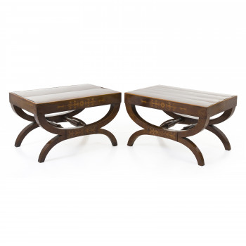 Coppia di tavolini lastronati Noce e radica Italia settentrionale,…