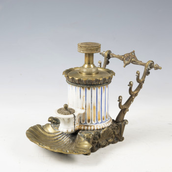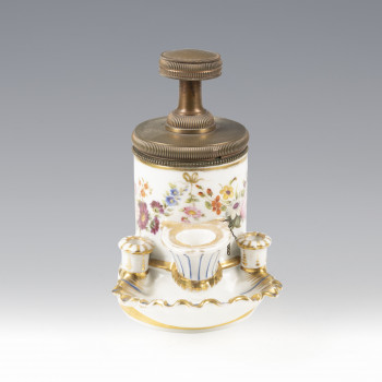 Calamaio a pompa Porcellana e bronzo XIX secolo 14,5…