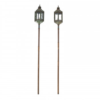 Coppia di lanterne Metallo laccato, asta in legno XIX…