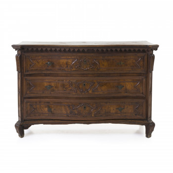 Cassettone con fronte e fianchi mossi Lastronato in noce…