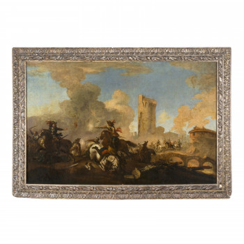 Scuola romana del XVII secolo Battaglia nei pressi di…