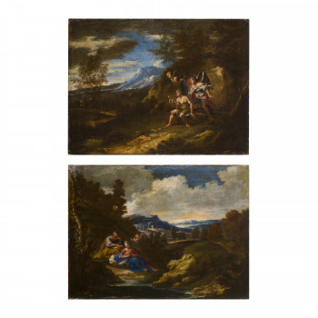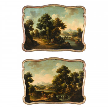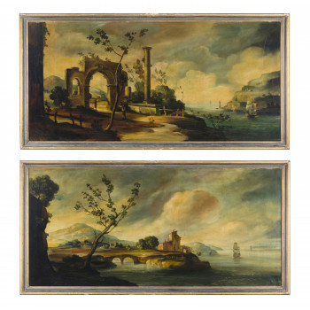 Scuola italiana del XIX secolo Coppia di paesaggi Olio…