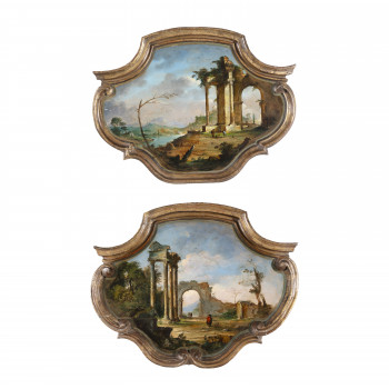 Scuola italiana del XX secolo Coppia di capricci Olio…