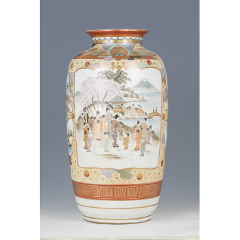 Vaso in porcellana policroma con decoro di fanciulle entro…