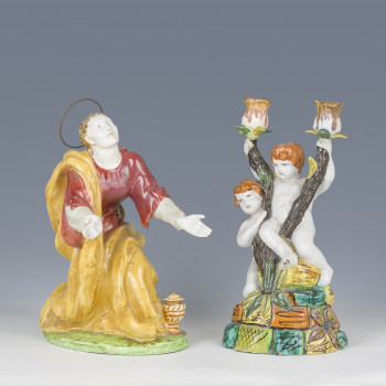 Candeliere e Santa Maria Maddalena, manifattura Minguzzi, XX secolo…